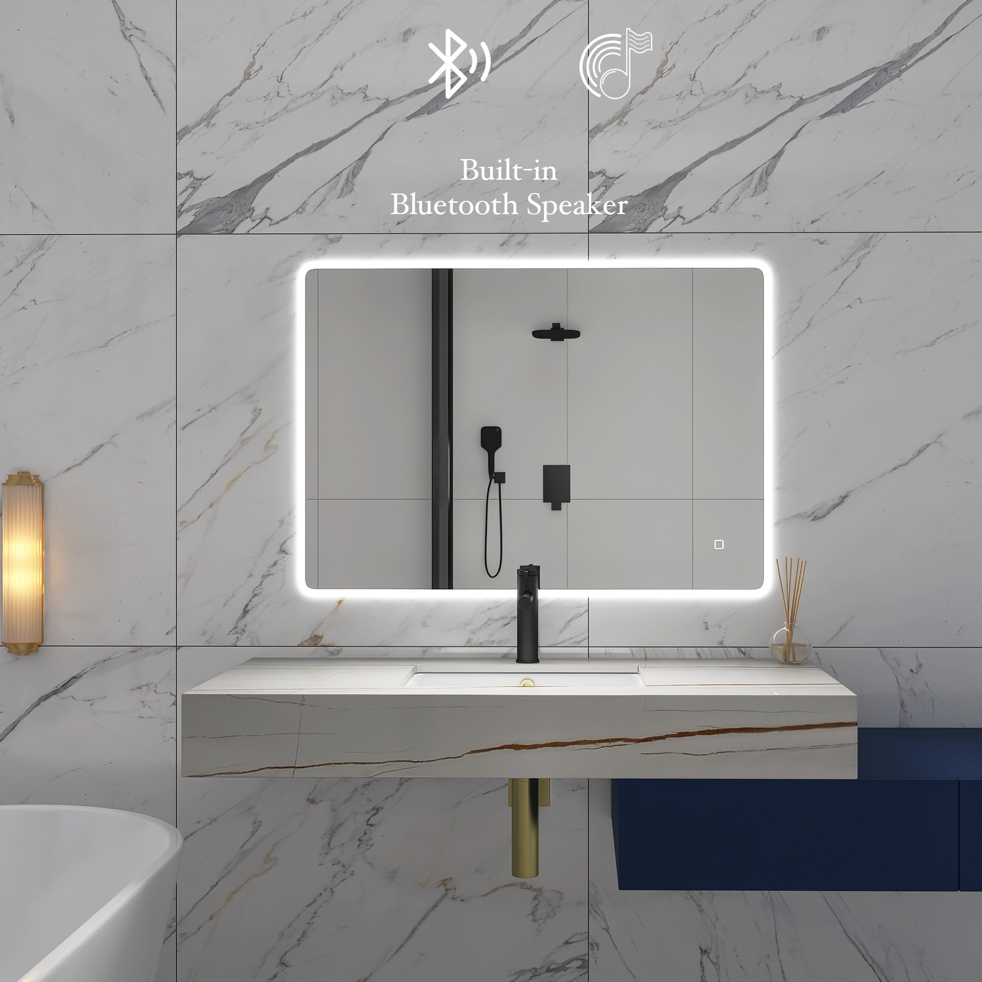 40 x 28 in. Large Rectangular Frameless Wall-Mount Anti-Fog LED Light Bathroom Vanity Mirror