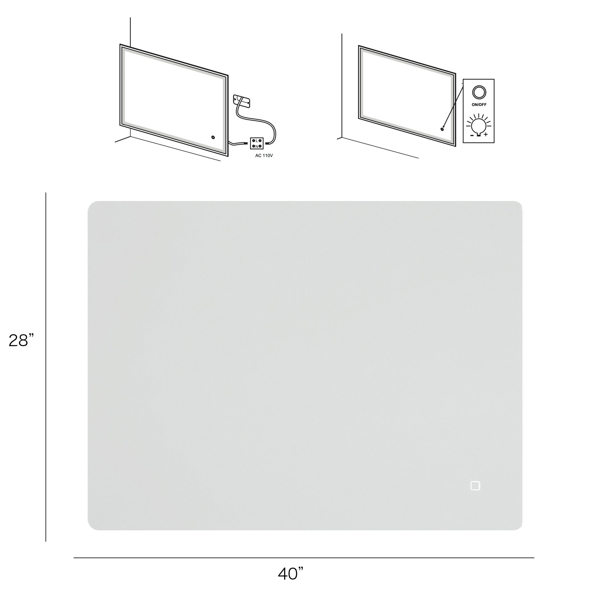 Home > 40 x 28 in. Large Rectangular Frameless Wall-Mount Anti-Fog LED Light Bathroom Vanity Mirror