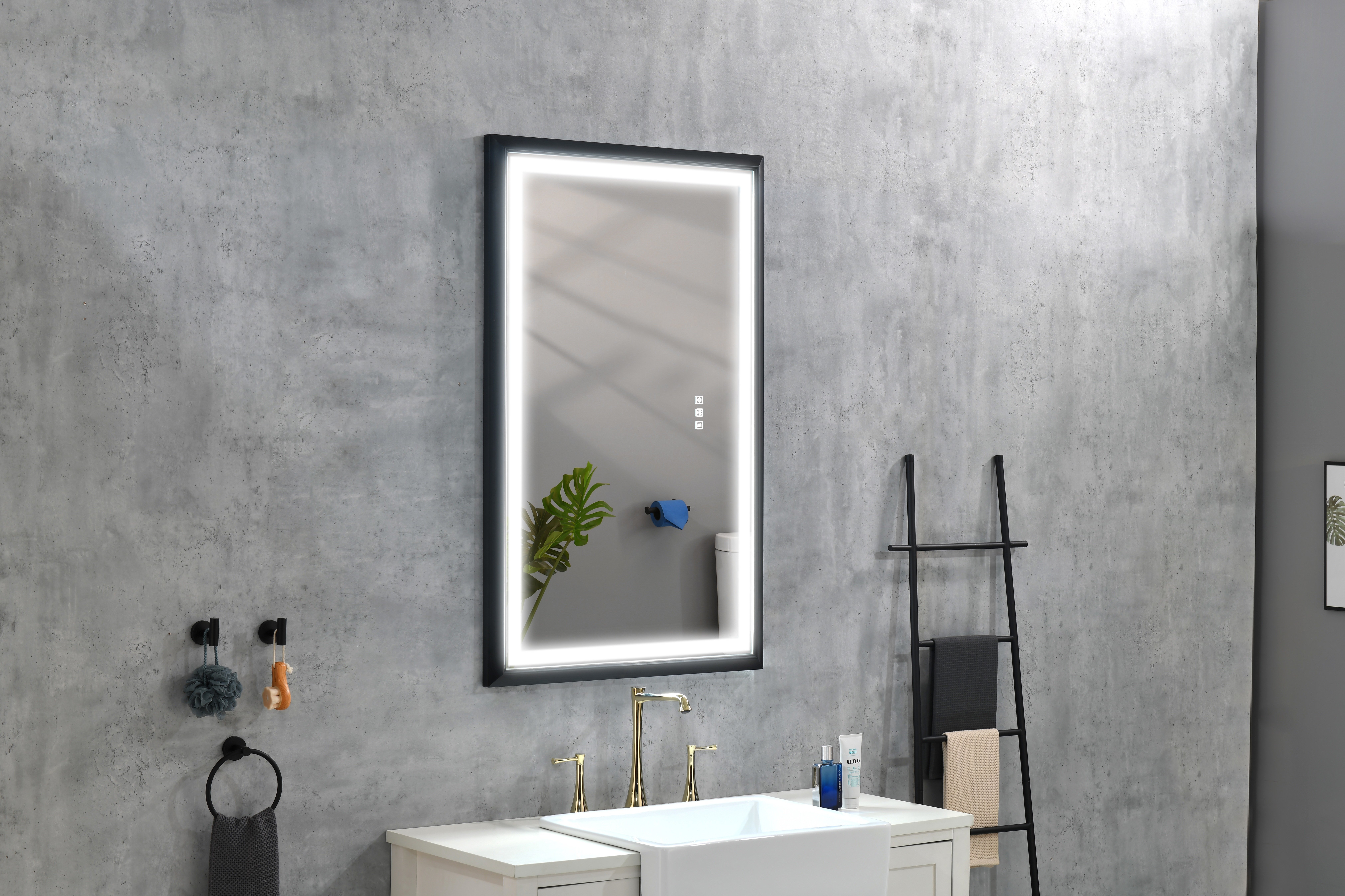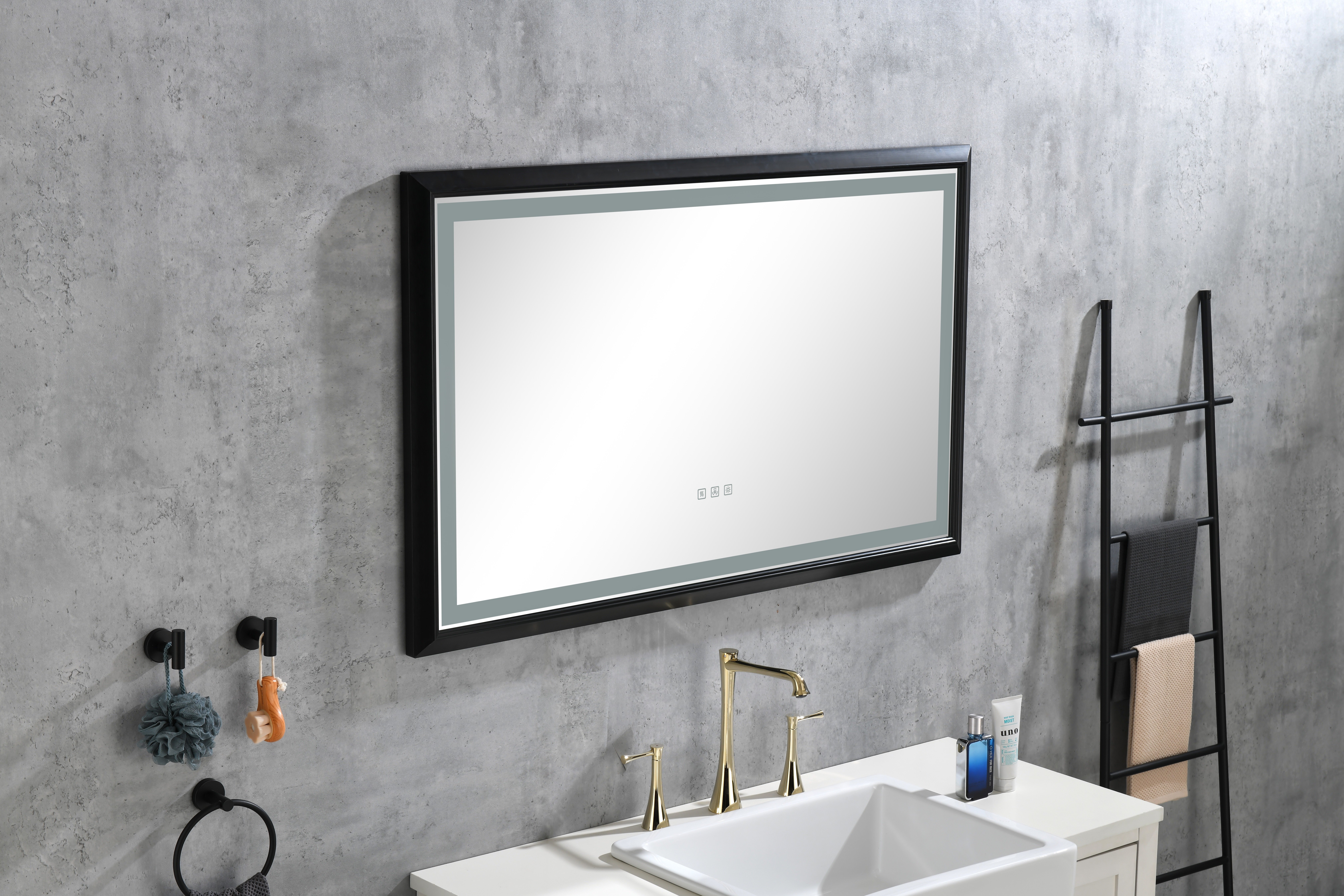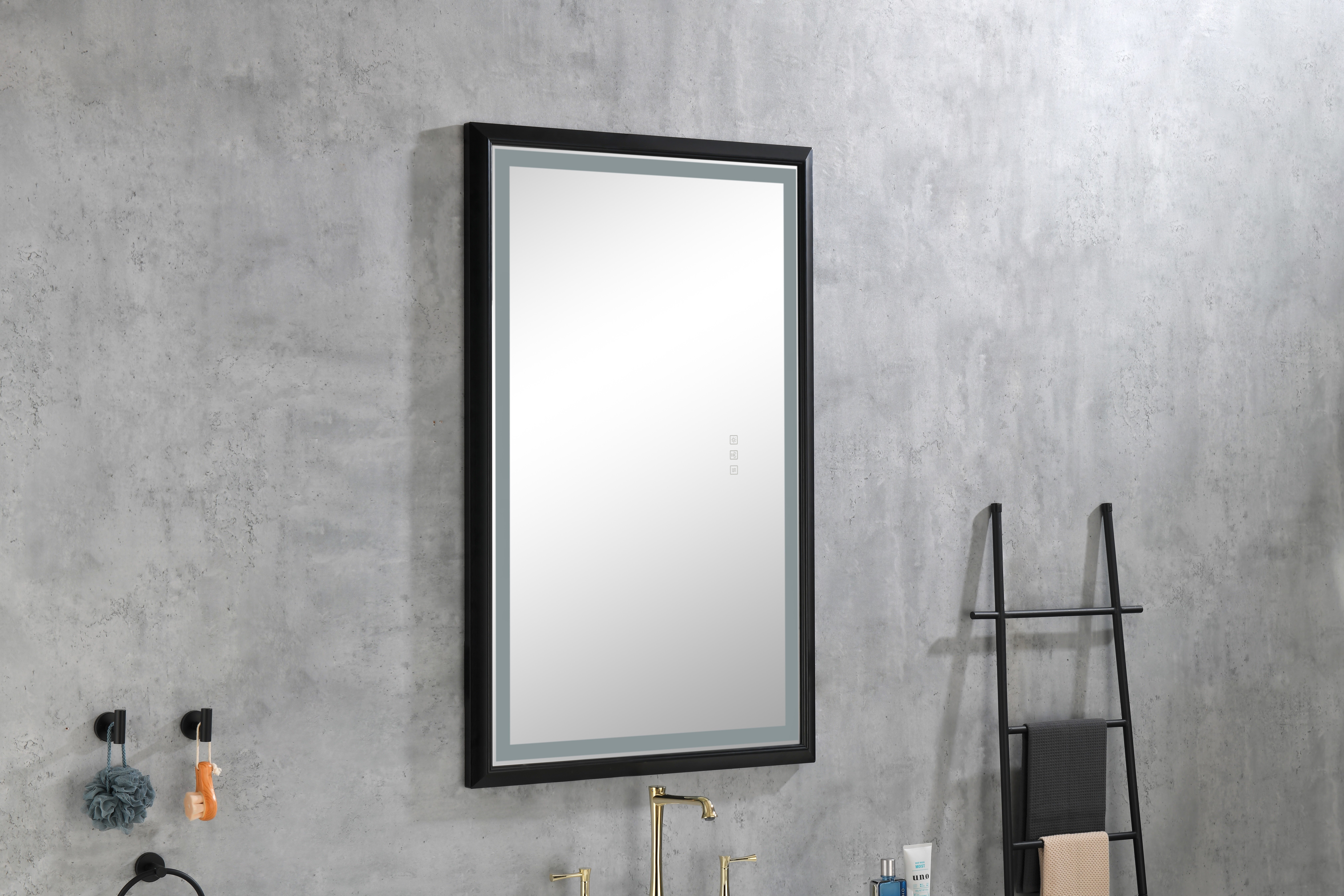 This black frame rectangular LED light mirror from ; the black frame has explosion-proof function; which can make the mirror more stable. Using oversized copper-free mirror material; it is safer and more environmentally friendly and not easy to corrode. Energy-efficient LEDs; excellent lighting and low energy consumption; high-efficiency LED strips bring a high-quality and durable experience that adds a warm and homey feel to your home. Immediately inject style into your space with this traditional LED mirror; which is perfect for bathrooms; entryways; living rooms; bedrooms and more. At the touch of a button you can use or switch multiple functions; the mirror is equipped with all the necessary accessories for installation; and the installation is very simple. Due to the large size of the mirror surface; it is recommended that more than 2 people assist together to complete the easy installation.