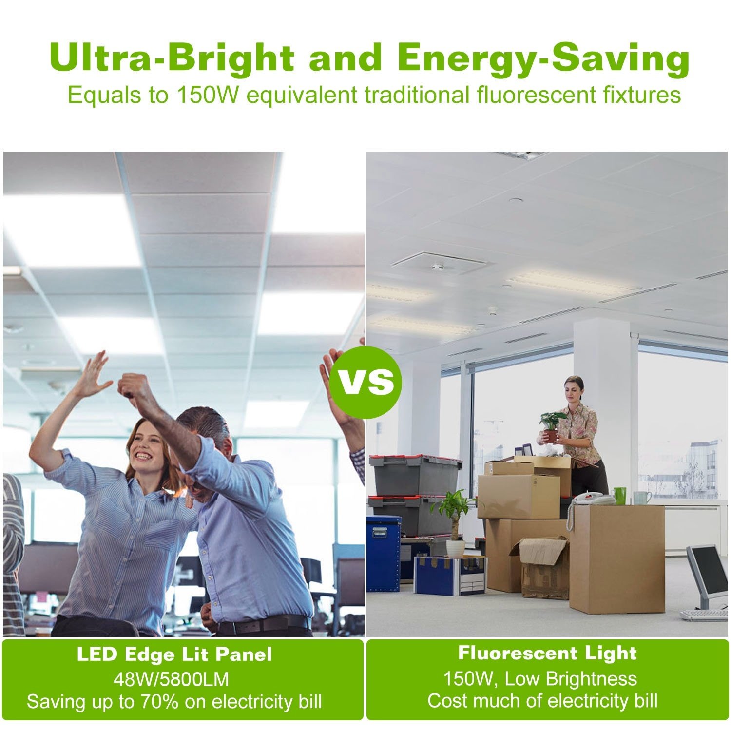 *Ultra-Bright and Energy-Saving*:Built-in 48pcs SMD2835 LEDs,our LED panel light offers total 48W excellent lighting effect equivalent to 150W traditional fluorescent fixtures,saves up to 70% on electricity bill.