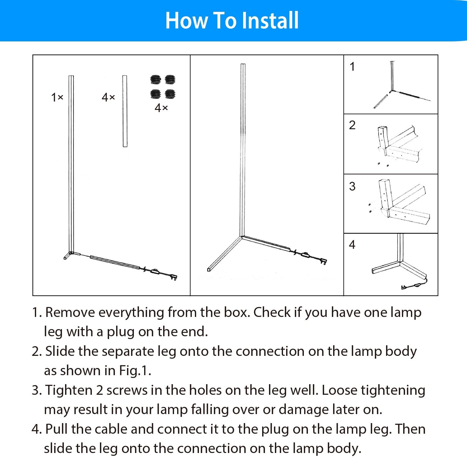 *Space-saving And Safe*:Being 1in wide and 56in tall; this lamp takes up minimal space. Screw 2 pieces of 15.7in metal onto the light to make it sit flat and firmly on the floor at 90 degree; which is safe for children and pets.